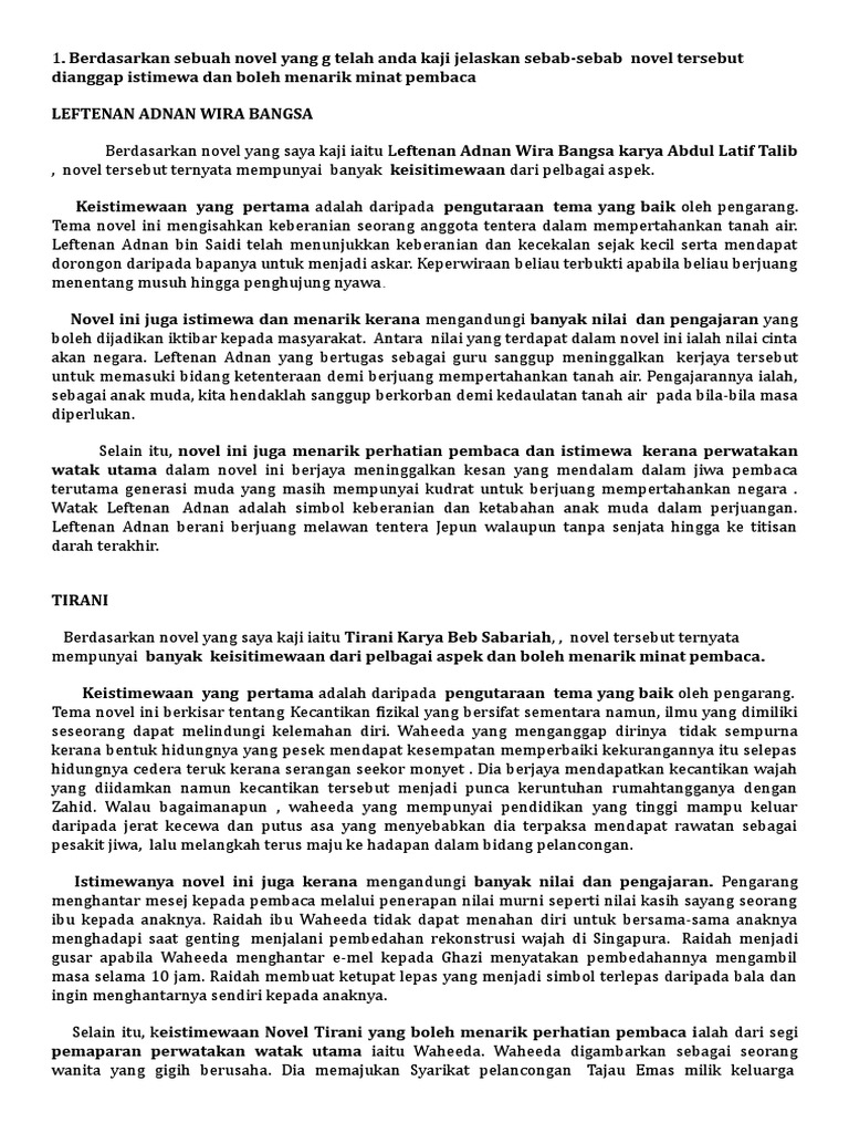 Related : Pengajaran Novel Leftenan Adnan / Novel yang saya kaji di tingkatan 4 ialah novel leftenan adnan wira bangsa karya abdul latip bin talib..
