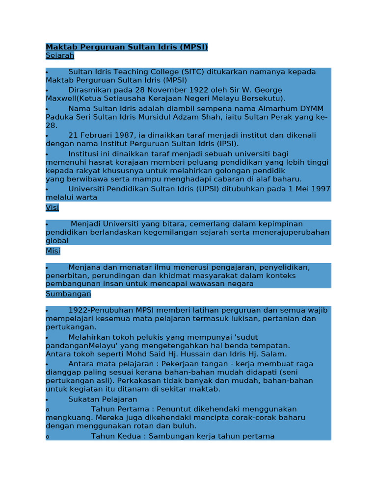 Pergerakan Pengakap Maktab Perguruan Sultan Idris Tahun 1953 Pdf Document from demo.vdocuments.mx Check spelling or type a new query. Maybe you would like to learn more about one of these? We did not find results for: